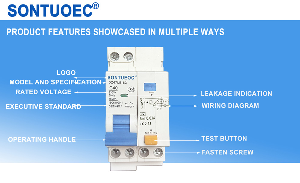 SONTUOEC är en av de kinesiska leverantörerna/tillverkarna som specialiserat sig på tillverkning av olika små elektriska apparater.DZ47LE gäller till en linje av AC 50/60Hz märkspänning 230V för enpolig tvåledare , 2 polig för för 4 polig e eller 3 pol e. 4 polig och märkström upp till 63A. Den kan skydda linjen och motorn från överbelastning och kortslutning Den kan även användas för sällsynta linjeomvandlingar och sällsynta motorstarter. Den överensstämmer med standarderna i IEC61009.1.