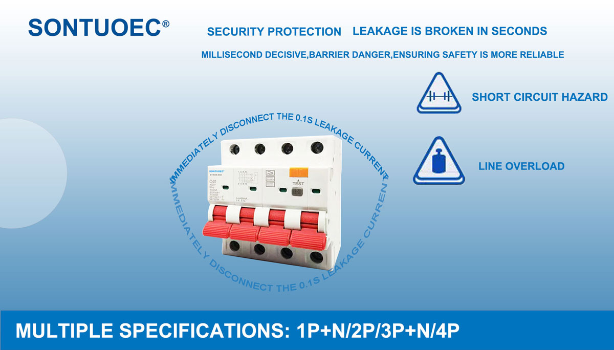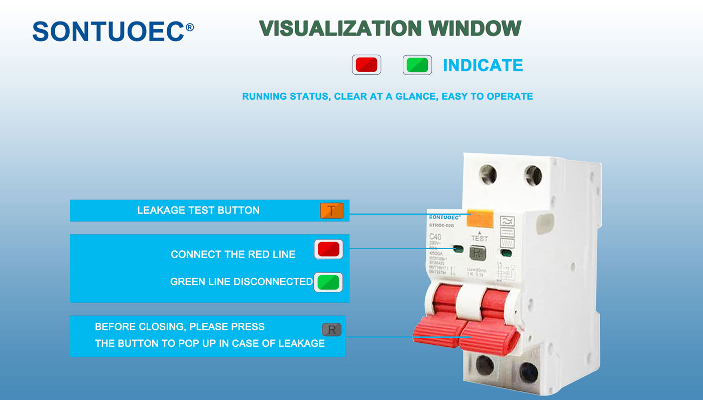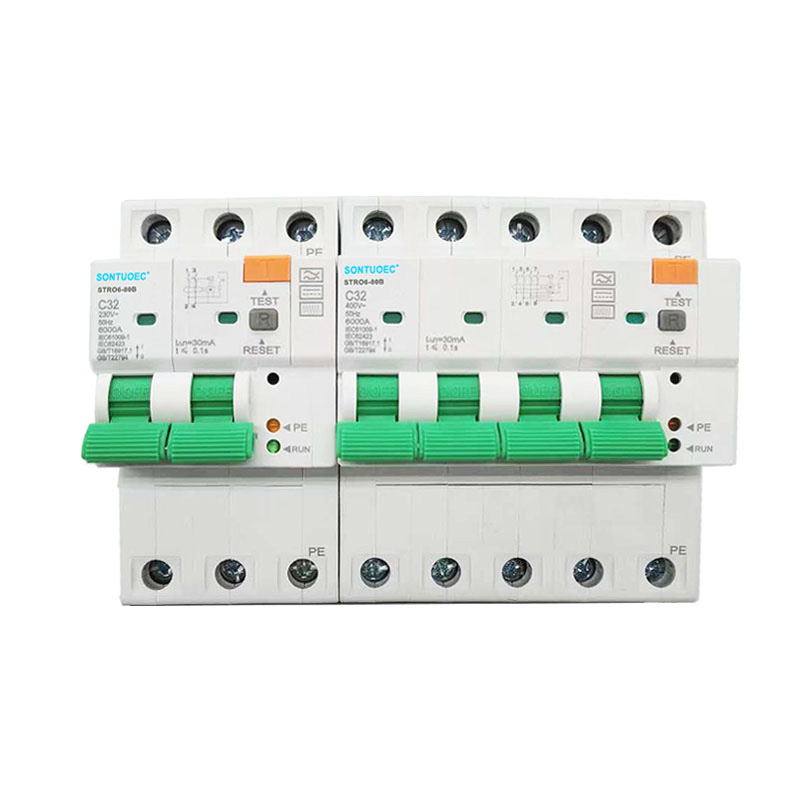 Läckskydd: STRO6-80B RCBO kan detektera restström (dvs läckström) i en krets. När restströmmen överskrider set -tröskeln kommer RCBO B -modellen 2P 4P restströmbrytare att skära av kretsen på en mycket kort tid för att förhindra elektrokutionsolyckor och elektriska bränder.