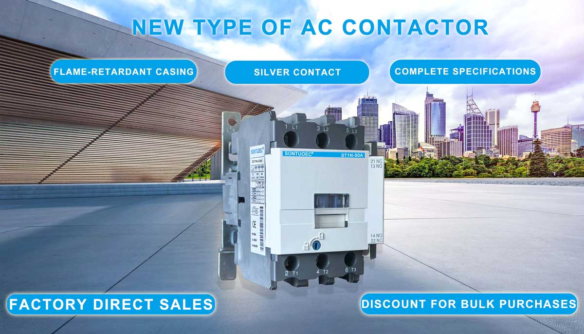 SONTUOEC är en av de kinesiska leverantörerna/tillverkarna som specialiserat sig på produktion av olika små elektriska apparater ST1N Series AC Contactor är lämplig för att använda i kretsarna märkspänningen upp till 660V AC 50Hz eller 60Hz, märkström upp till 95A, för tillverkning och brytning, ofta start och kontroll av AC-motorn. Kombinerat med hjälpkontaktblocket, timerfördröjning & maskinförregling etc, blir det fördröjningskontaktor, mekanisk förreglingskontaktor, stjärn-trekantstartare. Med det termiska reläet kombineras det till den elektromagnetiska startmotorn. Kontaktorn är tillverkad enligt IEC 60947-1.