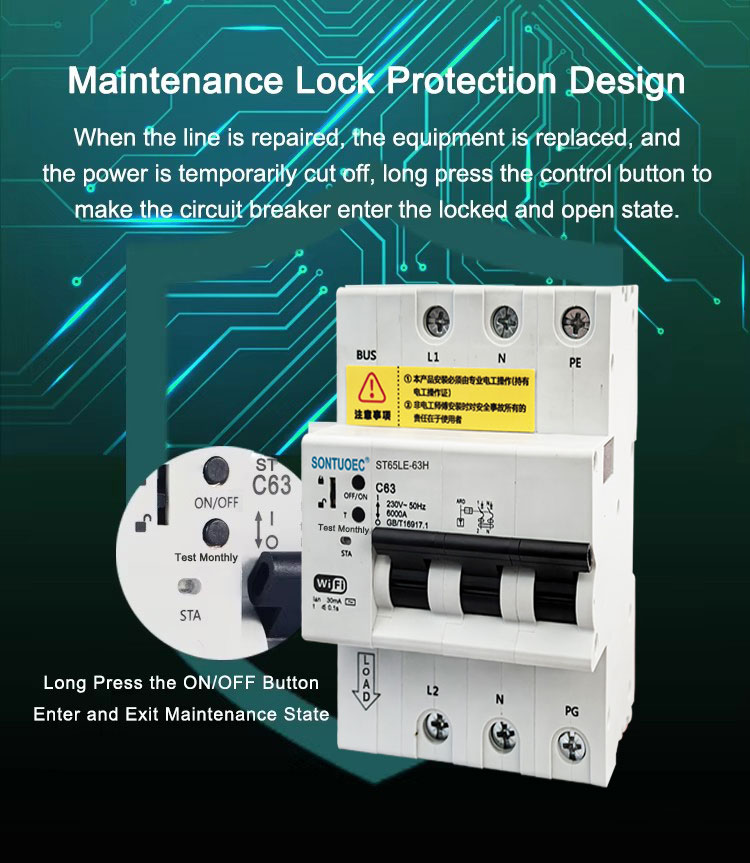 SONTUOEC is one of the Chinese suppliers/manufacturers specializing in the production of various small electrical appliancesWiFi 4G Tuya St65le-63h Series Multi Functional RCBO Intelligent Circuit Breaker is also a product produced by SONTUOEC Has overload/short circuit/leakage protection function Intelligent networking function Data monitoring and analysis Fault prediction and alarm class.Can be used in smart homes, commercial venues, industrial fields, and andra platser.